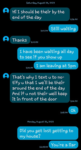 After 2 months of the bedroom set not being in, he says its still going to be a while but gave an alternative option to swap it with. We were basically forced to change our bedroom set because he lied and wasn't able to get the one we "ordered." We are going on 3 months and the dining room table still isn't in and we decided to cancel it. He said he canceled it a week ago but in reality he still hasn't canceled it. He was caught in yet another lie.