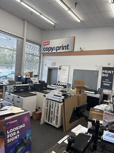 Read moreTwo stars because the printing is always fine. Also, the employees who know about printing are knowledgable and super helpful. The last few times I have been here, they have been so understaffed and it seems like the knowledgable staff is all gone. There is a manager who is clearly overstressed, overworked and can no longer hide her anger and frustration from her face. The phone rings constantly, and today, there were two people in the mail area waiting, one worker helping a customer working a machine. Another worker, quite pleasant but needing help on a machine and not working on something for anyone standing in line. The aforementioned manager is very busy making sure the signage for the latest deal is hung and pretty. When the worker asking all the questions finally came to help me it turned out my order is not ready, in spite of the fact it was promised Saturday and it’s Monday afternoon. They agreed to finish it right away. I asked to make sure my laminated posters were trimmed to the proper size and both the worker and the manager looked at me as if I had 27 heads and proceeded to argue with me about it while the line behind me is now five people and one of the two mail people is being helped and the other still waits. Now 25 minutes later, he is still trimming my posters (should be a 30 second job) and the rest of my print job has not been touched…45 minutes after I arrived. And more than 40 hours after the job was promised. I am going to try to find out how to get shot this in the future. Ten minutes later still, I am in my car with my trimmed posters and letter sized flyers. The manager and I apologized to each other and she assured me that the rest of my order would be ready later. Staples, if you don’t figure out how to do better staffing, I may choose to spend MORE to get my job done quickly and...