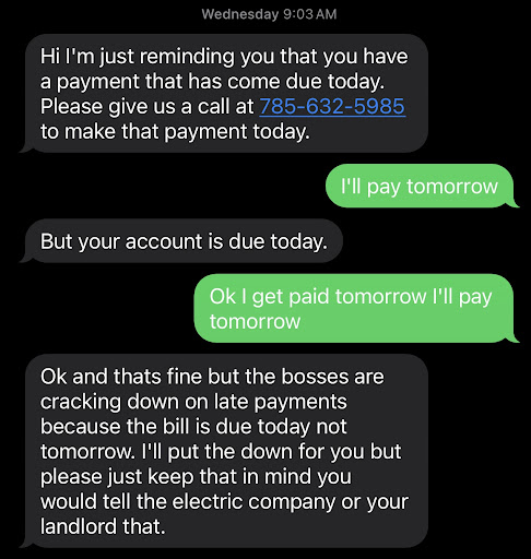 Customer service has been very low recently they texted me and said my bill was due Wednesday and I told them I can pay Thursday the same week. They then responded with “Ok and thats fine but the bosses are cracking down on late payments because the bill is due today not tomorrow. I'll put the down for you but please just keep that in mind you would tell the electric company or your landlord that.” They do not care about their customers and are very rude it saddens me because I have been with them for so many years before it was even mikes and paid off my fridge, dishwasher, stove, couches, end tables, carpets and probably more…. And then to get talked to like that even though I always communicate when I can pay and they have cards on...