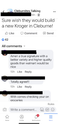 Read moreUnfortunately I work for an app that has me pick up and deliver groceries and sometimes I have to come to this store and I dread it every time. The employees that work at this Kroger are nothing but rude. You should have a sense of community at your local grocery store but this Kroger needs to be shut down, removed and replaced by something better and with people that know sincerity and customer service. I get treated horribly almost every time. 2 days ago I was there doing my job and the woman working the cashier '15 items of less" line made a few nasty comments that I was holding up her line and rolling her eyes at me and in the end, she was the one who was wrong because she didn't know how to work the register and she did not apologize, gave me massive anxiety and made me feel terrible. As desperate as I am to make money for a living to help my disabled grandma and child with autism, I will never take an order for the Cleburne Kroger ever again. I am done...