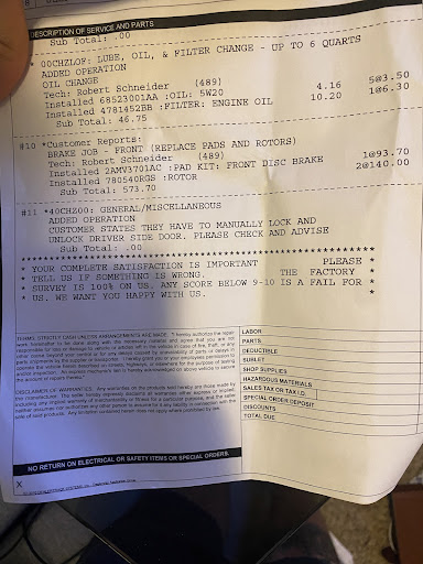 Traded in my 21 Cherokee Latitude Plus for a 18 Grand Cherokee Laredo. Communication started to slack after i signed paperwork (on Wednesday June 15). Lesson learned don't sign paperwork till you get the vehicle more inspected/anything fixed that needs to be fixed. I texted Taylor who i used in sales to get a follow up on Thursday June 16 to see when the detail and seat cushion repair would be completed since I live about 40 mins from the dealership. I chose to use this dealership based on previous positive google reviews. Thursday at end of day Taylor did share with me she was busy and forgot to send it through detail. Friday June 17th the suv was put through detail and the ozone treatment was completed. The other flaw was that the screen system where apple car play is at needed to be replaced. When I picked up the vehicle on Saturday June 18th Chris mentioned to me that they would replace it for me and get it fixed and to call back Monday to schedule an appointment with service. If i would've known i needed to make an appointment for the screen repair I would've wanted to get everything done before driving out to pick up the vehicle on Saturday. On Monday June 20th I call Used Car sales and asked for Chris to call me back; they said he was with a customer which is understood but I never received a call back. Tuesday June 21 morning I call service directly since i didn't get a follow up from Chris regarding my situation of having to drive back and forth as well as the communication issues of timing of things. Made an appointment for 8am on Wednesday June 22. I show up this morning (6/22) and service says they need to confirm that used cars promised me this replacement screen. I wait about 45 mins for them to confirm that the part had already been delivered and ordered previously when the grand cherokee was first traded in and went through their inspection. The service team fixes and replaces my screen after another 35 mins of waiting which is not a bad wait at all at a dealership. I thanked Barb for her time as well as Yancy for taking care of me promptly. Taylor reached out to me this morning advising me that she had a rental for me but I advised her that service had already fixed the screen. Not sure why she wasn't informed when I found out about the parts already being at the dealership ready to install in my vehicle because I didn't need a rental at this point. After leaving I take my grand cherokee to get the tires inspected; two front ones are at a 4 and both rear tires are at a 3. Talked with Andrea today 6/22 (not sure how to spell her name) and she had a difference of opinion that all vehicles go through inspection and they wouldn’t sell a vehicle with that poor of tread on them. She suggested that maybe I was being told wrong information to try to get a sale on four new tires but I assured her that I used a local business that I trust. My fault I should've had them inspected before signing paperwork. Lesson learned for sure. Now I'll be out some money replacing...