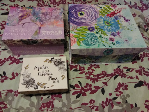I bought these beautiful storage boxes today. They were on sale 50% off. Original price was $10 for large, $7 for medium, and $3 for...