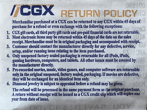 I am sad that some people have given this place bad reviews. This is not the Coast Guard's policy, but the policy of all 7 uniformed services.