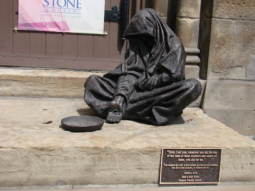 Read moreAn integral part of Cleveland's Public Square, Old Stone Church is hosting an interesting sculpture on the stairs of their right front door at the Corner of Ontario and Rockwell. The plaque by the sculpture reads: "Truly I tell you, whatever you did for one of the least of these brothers and sisters of mine, you did for me." "Les aseguro que todo lo que hicieron por uno de mis hermanos, aun por el mas pequeño, lo hicieron por mi." Matthew 25:40 Hank & Barb Waters Sculptor: Timothy Schmalz In October 2023, another Timothy Schmalz sculpture was installed in Public Square across from the Old Stone Church (near the statue of Tom Johnson) titled: "Let The Oppressed Go Free". Representing victims of human Trafficking being liberated by St. Giuseppina Bakhita 1869-1947 Sudanese Canossian sister canonized in 2000. She is the patroness of victims of Human trafficking. The installation will be on display until...