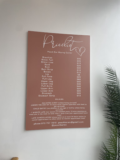 Read moreI just want to say that Jeanette is amazing and I absolutely love her because she makes me feel comfortable at my appointments with her, very social and super nice. She overall is amazing and 10/10. However, with the peach bar itself I’ve actually felt quite annoyed with them in the way they operate. I want to start off by saying that the cancellation policy should have more flexibility to it because this is the 2-3 third month in a row that they cancel my appointment because the waxer either quit, called out or whatever (this is outside of Jeanette because those times I booked with a different waxer because of her being booked so I would go with someone else). They give me the option to rebook with someone else but it’s very frustrating when it’s close to my appointment date and I pretty much have to either accept the cancellation or book with another waxer which is a complete BALL TOSS because you can get the next waxer available (who is either new or has not been there very long). For example, my recent wax appointment was cancelled and they called to cancel or rebook with someone else so at the time I didn’t rebook because I didn’t know my schedule. So I rebooked with another waxer when I went on the website and when I went to the appointment she burned me with the wax. Despite me letting her know the wax was HOT and she did my underarms first and despite me still letting her know after each strip she didn’t even try to cool it down and you can only imagine how painful it is for the wax to hit the most sensitive areas of the Brazilian and my wax after had my area red, bumpy, and extremely sensitive and these are things that DO NOT happen with Jeanette. I was just overall annoyed about that. It’s also the fact that they can call and cancel since the waxer for that appointment is not in today but god forbid I cancel because I am sick which has happened a couple months ago since I had COVID and was not about to pass that along to someone else and I spoke to the receptionist who made me jump through hoops to talk to the owner in order for me to have the money they charged me full service for despite me calling prior and advising I had COVID. When I spoke to the owner she was very reiterate about next time not moving over the full charge if I were to cancel again despite me never cancelling at all prior and I’ve been going to the peach bar for a little over 3 years. I was literally sick or else I would’ve gone but when the receptionist calls to cancel my appointment due to whatever reason with the waxer I pretty much have to deal with it. I understand policy is policy TRUST ME. HOWEVER, the policy is only effective when the service is consistent and not disruptive. The waxers there are never consistent and come and go so that tells me that either the pay is low or the rules of the facility are not employee friendly enough to stay, I don’t know. Overall, wanted to express my frustration because as much as the location is convenient for me and I currently love the waxed I usually book with, i will not be returning. I also had my friend put my name in the referral section prior to her first wax and I asked if there is a discount in place for the referral and the receptionist said I needed some card however, I don’t see the difference since she put my name on the intake form she did. It doesn’t make sense, but neither does the operations in...