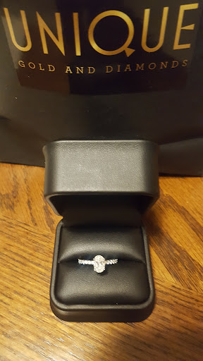 Read moreI started looking for places to buy an engagement ring on pretty short notice. Of all the places, Unique Gold and Diamonds stood out for me. Most places had very mixed reviews, but they had amazing reviews so I stopped by on a Friday after work. I came in to the store pretty nervous, no knowledge of engagement rings and with nothing but a few pictures of rings my girlfriend had hinted to me. I showed the owner/jeweler, Mike, the pictures and he showed me a few rings she might like. He also explained that he could make a ring from scratch and drew up a ring. It was a little out of my price range, but he said that they offer payment plans and financing. While it was a beautiful ring and I would have loved to get it, not once did I ever feel pushed or pressured into buying it. We went back to the original rings he had on hand that he showed me and there was one that stood out more to me, but still wasn't positive. He said that even if I get the ring and my girlfriend doesn't like it and wants something else, I could bring it in and what I already paid could be used towards the price of a different ring. This definitely made me feel much better and he even reassured me that based on the pictures I had shown him that she was going to like it. He just had to clean up the ring and resize it and told me to pick it up 3 days later. When I picked up the ring it was immaculate and even more beautiful than I expected. My fiance loves the ring and is constantly taking pictures with it and showing it off. Mike couldn't have been more of a help to me. He was friendly, knowledgeable, patient and wanted to make sure I made the right choice and was happy with that choice. I highly recommend Unique Gold and Diamonds and will go back without hesitation in the future...