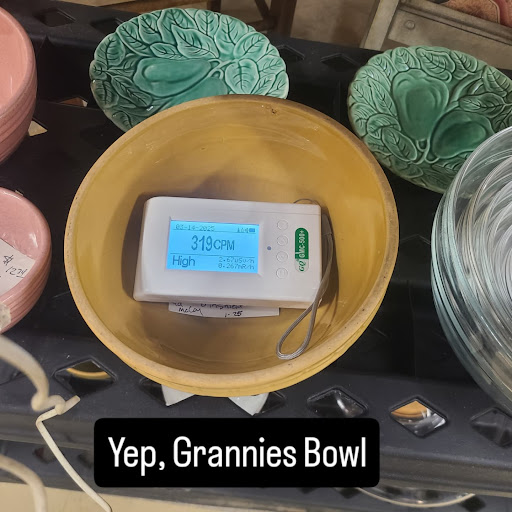 My interests are vintage 1800s to 1930s home goods with radioactive components, like radium or uranium. I carry a UV light and search for glowing green objects, accompanied by a Geiger Counter.