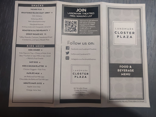 Read moreMy husband and I had fantastic time seeing Inside Out at the Landmark Theater in Closter! We had originally bought tickets for the 8pm showing, but there were some issues with the projector so we were able to see the movie at this time. The manager, Balazs, was so kind and accommodating. He was apologetic and offered us either a total refund or the opportunity to view the movie at 8:45pm. We decided to hang out at the beautiful bar, get some food and see the later showing. It was totally worth it! We really cannot stress how wonderful it is to have a clean theater with a variety of showtimes and plenty of snacks/food to offer so close by! Thank you to the Landmark Theater team for your graciousness, accommodation, and making our movie night so effortless! We can’t wait...