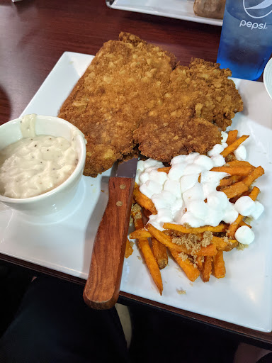 I had the chicken fried steak for $17. It came with choice of 2 sides, so I chose a side salad and loaded sweet potato fries. I hesitate to give something the title of "the best", but this chicken fried steak has to be close. It was huge, thick cut, and really good. The side salad was good as well, with cheese, croutons, and a couple tomatoes. Lastly, the loaded sweet potato fries were delicious.