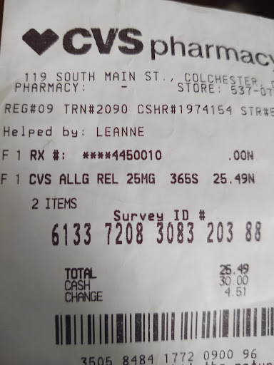 I am over the lack of communication by Colchester CVS. For years, I have been extremely understanding of how busy they are and how they canāt always control everything. I know that these things are rarely one personās fault but I have never had any other issues at other locations. Before that phone call I decided that I would switch to a local pharmacy for two of my medications because they can mail it to me out of state, but this was enough to...