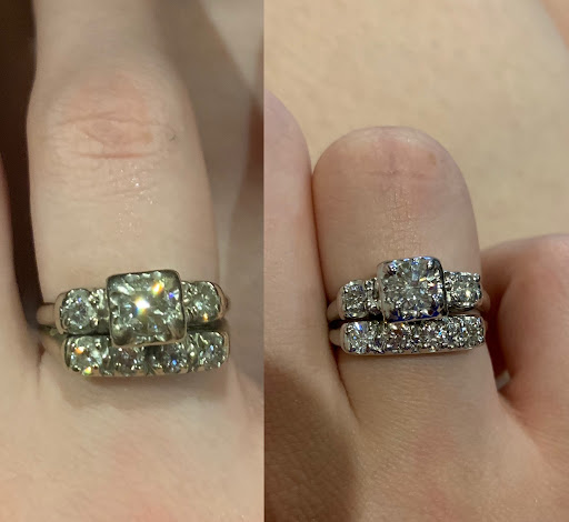 We worked with multiple jewelers, local and big box types (Kay, Stafford, Jared's, etc). The engagement ring I bought (from Stafford) had issue after issue, so I didn't want to buy the wedding band there as well. My wife had a very specific image in her mind of what she wanted in her wedding band and many places either didn't have anything close in stock, or if they did, it was way out of our desired price range. Joe Geraci was recommended to us so we decided to give him a visit.