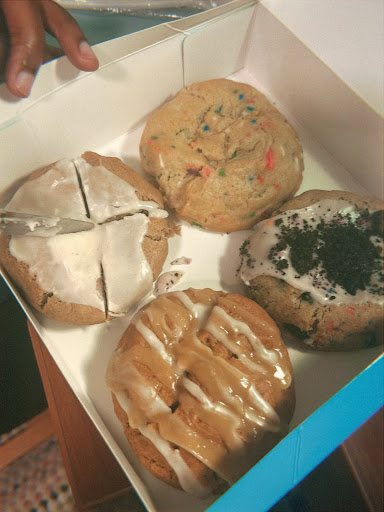 Read moreMy friend came to town, and we were literally looking for a midnight treat after picking her up from the train station. We did the four-pack of monster cookies. We got the oreo cake, caramel pumpkin spice, cinna-roll, and birthday bash. I love how they include instructions on the box for storing and reheating the cookies.