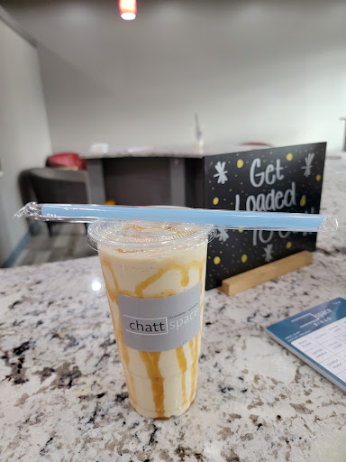 The signs may say Chatt Space in big letters out front, but this place is so much more. If you look close, you will see the tea and smoothie ad on the window. This is why I am here to find out about specialty products. As you walk in, everything is clean, crisp, and modern colors. The rap around the bar top looks inviting to stroll right up and order. As you walk up to the bar top, you will be greeted by a friendly staff that one of them loves wiener dogs. As I look over the specialty smoothies with lots of yummy options, I try the nutty butter shake. They also have teas or specialty drinks to improve your health to waking you up juice. Aka a healthier alternative to coffee. As you can see from the photos, I just stared at all the vast flavors and options to choose from in the neatly bins across the counter. I was talking with the manager and business partner about this unique office space / smoothie bar / tea/ beauty drinks. I decided they could use the blast publicity to get the word out because they have some really good drinks here. Whether you are looking for a meal replacement smoothie or a pick me up caffeine blend drink with many assortment of juices, it is all right here on Little Debbie parkway in Collegedale, TN.