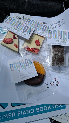 Read moreJenny and Sean stuff their candies with so much love you'll think a granny made them. Not only are they delicious and beautifully made, they have such unique ingredients that it's basically an educational experience to eat. My kids have grown up with BonBon Bombardier so you can't fool them with rainbow colored nonsense out of a bag! They only want holiday shaped chocolate pops (vegan) and pate de fruits (also vegan). We always pick up a treat from BonBon when we're at EclecticCO, in fact we frequently make special trips downtown when Jenny posts that they've restocked their inventory!! Definitely follow them on Facebook to get all the BTS details and incredible wildflower pics from their epic...