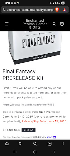 When you advertise on your website saying we could take the prerelease kit home, yet when we get to the store we can't actually because of limited supply makes both myself and my husband, who would frequent the store rather upset as he was excited taking his first prerelease kit.