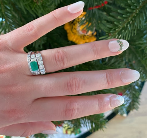 My husband proposed with a great emerald ring-my only request was for it to be square or emerald cut to wear with my grandmothers wedding band… I loved the idea of an emerald instead of a diamond as an engagement ring, but unfortunately the type he got did not suit me, as I constantly banged it into things and caught it… to the point that it got bent, lost a diamond, and lost a prong off the emerald…