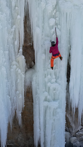 Day 2 started with a drive south for some ice climbing. Again great weather but … ugh! We had to climb in the shade. A little more challenging approach more of an uphill hike. Did some great but very tiring (for me) multiptich climbs … thank-goodness Jeremiah didn’t put tons of screws in … I hate all those screw-stops. Unlike the Flatirons, my upper body finally got a good workout.