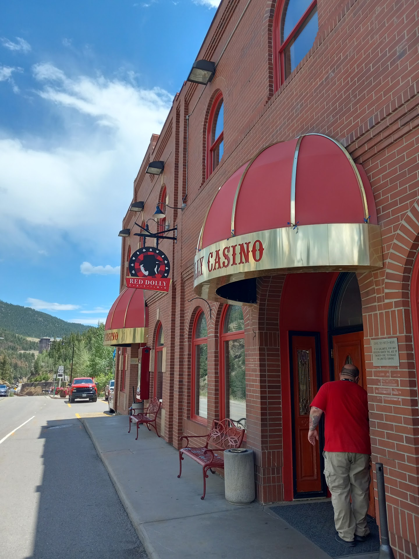 I've driven past the Red Dolly many times, noticing their "$7.99 prime rib dinner" sign. Tonight, we decided to give the restaurant a try. We weren't there for the casino this evening. What a nice surprise! First off, don't expect a lot of ambiance. It opens up above the cozy casino and has a couple large screen TVs playing football on the wall. It kind of has a small cafeteria feel. The menu is pretty limited but sufficient. I don't eat prime rib. My partner does though and it he really liked it. I didn't notice much fat and it was a substantial size. With a baked potato and plain side veggie, it was a good sized dinner. I had a mushroom Swiss burger and it was excellent. Was definitely a hand shaped, thick burger and the mushrooms were grilled fresh, not the rubbery canned ones some restaurants offer. I also ordered a bowl of green chili. It's more of a New Mexico style with tomitillos, than Colorado green chili. It was very good with a bit of a kick to it. Saved a few spoons for the top of my burger. Wise choice! The service was good. Our waitress was a little aprubt. She certainly wasn't one of those who is going to sit next to you and write "Nancy" or whatever her name is, on the tablecloth. Yet she was very efficient. Refilled our pops numerous times and quickly delivered requests like a side or ranch dressing or a piece of pie. The other thing I appreciated is our food came out piping hot. Finally, their prices are fair. So many restaurants now have way overdone it with their price hikes. Example, I ordered regular old chicken fried rice at a Chinese place in suburban Denver last weekend and was shocked it was $17.00! Red Dolly is comfortable, reasonably priced, and serves good quality food. I was pleasantly surprised and will be going back. I bet their...