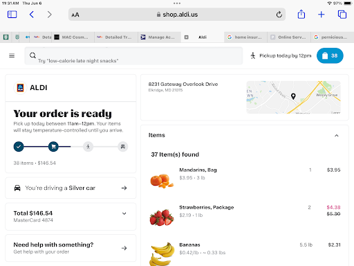 On reflection, I think it’s possible that my order had actually been shopped at the Gateway Overlook Aldi by the shopper, but the “manager,” out of personal animus, decided not to hand it over to me.