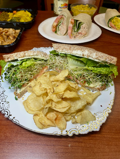 STAMP!! Their Powerhouse Sandwich ($7.99 with romaine, tomato, alfalfa sprouts, Monterey Jack, Mayo, Italian seasoning, granulated garlic, 7 grain Shiloh bread, & chips). Simple, healthy, but tasty with flavor!!