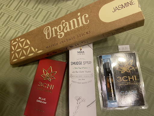 I left with tears in my eyes and they made me feel one step closer to finding “normalcy” in my tragedy. Thank you. 🙏🏻 Here is my loot! I definitely recommend asking Iley about the 3CHU HHC vape in Blue Dream if you are needing a mellow, calming hemp-derived product. And the sage...