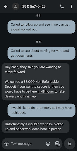 I have had nothing but terrible experiences with this dealership. Firstly, I wanted to buy an 24 3500 DRW. They unfortunately didn't have any instock and said that they will soon. The salesman told me that they were having a black DRW coming inbound. I told him I wanted it and it was now a waiting game. I was checking in with the salesman weekly. And then randomly, he texts me telling me the inbound 3500 was sold, he sold it right from underneath me! I found a 3500 DRW in a neighboring state.
