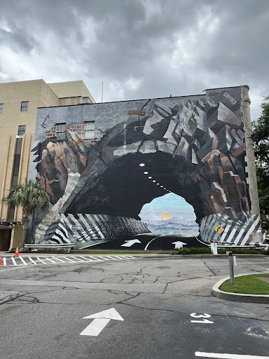 It’s located on the side of a parking garage, and while it’s not in a typical tourist spot, it’s definitely worth a detour if you’re exploring downtown Columbia or visiting nearby attractions like the State House. We loved taking a few photos and just standing there appreciating the creativity.