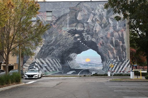 A fun and unexpected urban art surprise! The Tunnel Mural on Marion Street was such a cool find during our time in Columbia! We happened to be nearby and decided to stop—and we’re so glad we did. The mural is much larger in person than it looks in pictures, and the detail is incredible. It’s designed to look like you’re entering a tunnel carved into a rocky mountain, with a road disappearing into the distance and the sun setting beyond. The illusion is really well done—it almost tricks your eyes at first glance!
