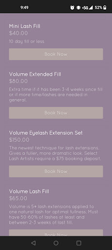 Read moreI just want to warn people that you might book one price and get charged another. That is what happened to me. I thought maybe I made a mistake but when I went back to check, the price was still what I booked at. Also, my service lasted about an hour for a FULL set. Then my tech tried to say that it didn't take very long because of the amount of lashes I had... Ha! I have had people say my lashes are beautiful without extensions. I like extensions because I'm a young mom that likes to look put together without constantly having to put makeup on and take it off. It's been a little over 3 weeks and I have no lashes left, really haven't had any for about 2 weeks. Many places offer a fill at three weeks because you should still have lashes. When I mentioned all of this I was told the manager is in charge of pricing. I have included pictures of the price listed vs what I was charged that was sent via email receipt. The weird cropping is to hide my...