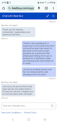 Read moreThe employees at this location are helpful, but Best Buy as a whole has been a consumer hellscape that I have been lucky to avoid until now. I ordered three appliances during the July 4th special and as I said, the store employees here were helpful. However, once I received these new appliances, two of them were broken the moment I received them. I'm going to skip over the washing machine fiasco and focus on the refrigerator because nearly six months later, I am still dealing with this. I called the best buy line to report the damaged appliance. It made a repetitive knocking noise so loud that you could hear it in the home's second story. I called early within the two weeks of Best Buy's warranty and requested to have a repair person sent out. The rep scheduled the repair near the tail-end of my warranty's two weeks. On the day of the repair, I cancelled everything I'd had that day to stay home and the same guys who delivered my fridge showed up, just as confused as I was, saying they were there to take a damaged fridge, but didn't even have a replacement. I called back Best Buy asking where the repair people were and the rep said, oh sorry, but you're outside your two weeks. Even though they made the mistake, they wouldn't budge and just reschedule the repair. They said my only option was to accept a new fridge. Fine, but they were out of stock and I'd have to wait until Nov. 1. I waited with this stupid fridge, that had also started making sudden, loud screeching sounds in addition to the knocking. I finally get the text that my fridge is going to be delivered and again clear my schedule because they don't narrow down their 10 hour delivery window until the night before. This time, the fridge isn't delivered because their system randomly changed my address to some random place I don't even know. It took me four phone calls and two escalation requests over nearly a week to get the warehouse my fridge was dropped at to release for re-delivery because the delivery guys hadn't done their paperwork or something? I got a different excuse every time for why my fridge was being held. Finally, the fridge was delivered, but my husband was home to receive. Fridge works but now there is a huge 23"scrape across our brand new floors that is right next to another scrape making for a grand total of 27". Immediately called Best Buy and they assured me I'd be hearing from their insurance company within 72 hours to request pics and assess damage. I called their insurance company twice with a phone number that goes to a VM weirdly enough, left two messages - still no contact from them. Called back Best Buy and they said I could email their insurance directly, BUT I'd need to wait for their information email with the aforementioned email address. And here's the kicker - I was informed to expect this email in two hours and that was a day or two before Thanksgiving. I just spent an hour pouring over two email accounts trying to find anything and no email. Worst customer and product experience I have ever had outside of food poisoning. The Best Buy company experience has been exhausting and demoralizing. Reps have reassured me over numerous calls I'd get an email or phone call regarding whatever fire we're putting out with the fridge explaining next steps forward and I never get these things. Best Buy is absurdly sloppy. I should've just coughed up the extra $200 and gone with the same...