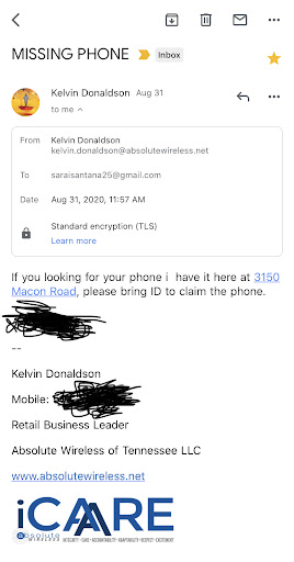 On August 31 I dropped my I Phone off @10-10:30AM to get my screen repaired, I was told I would get my phone back repaired the same day and to give them 4 hours max. I was having major surgery the next day and my husband would be working out of town and that would be my only source for communication. The employee assured me I would get my phone back the same day. I was instructed to "turn off my (find my I phone) in the settings" and fill out a piece of paper with my info and contact . After handing my I phone to the employee I seen him put it on top of the paper and laid it along side with other phones that seemed where there for repair on TOP of the counter and out in the OPEN. I left the store and walked next door to T-Mobile, I was at T-Mobile for about an hour. As hours went by I noticed it was 4:30 PM and I hadn't received a call that my phone was fixed and ready for pick up. So I called the store, was put on hold for about a 1 min or 2 and was told that my phone was NOT THEIR and they thought that maybe and "elderly couple" or one of their "regulars" might have accidentally picked my phone up by MISTAKE. The employee stated they had called a few customers that they knew was in the store that AM and they were waiting for someone to call back to confirm if they accidentally had picked up my phone. I was in disbelief so not mentally prepared to hear such news a day before major surgery. I asked if they had any cameras in the store and sadly I was told NO! that hit even harder! I was now looking at going into surgery with no form of any communication . I was apologized to and was told that they hadn't had this happen in their store in about 15 years and was assured that they would replace my iPhone but could not guarantee my phone to arrive the next business day before surgery due to how late in the day it had gotten. Luckily my husband had a spare phone I could use as a source of communication before he left out of town to work. About 8PM I'm on my lap top trying to figure how to recover my contacts through iCloud which didn't work because it needed a 2 authentication verification and one form was my actual phone so I decided to look through my Gmail and I notice I received an email subject: MISSING PHONE. I opened the email up and it was an email that my iPhone had been recovered and to bring my ID to an address provided to retrieve my phone. I googled the address and it was a T-Mobil/Sprint store located off MACON RD. ! I retrieved my phone and asked the guy how did my phone end up in his possession. He stated "A young lady came into their store and said her mom found my phone, she didn't know where and that she wanted to drop it off". I came home and as soon as I turned my phone on I'm starting to get phone calls from numbers whom I don't know back to back I did not answer and if I did I hung up and turned my phone off and was going to call the store whom lost my phone to let them know I FOUND my phone. I attempted to call the number that was calling me back on another phone and it went to a Verizon prompt. The next day I turned my phone on to call the store and let them know my phone was recovered and you will not believe the type of text messages I woke up to was the OWNER of the store was ACCUSING ME AND MY HUSBAND OF STEELING MY OWN PHONE AND TRIED TO CONSPIRE ME AND MY HUSBAND OF FRAUDUALENT ACTS. I have screen shots of the text messages attached below including the email that was sent to me. Now how the OWNER PERCEIVED that me and my husband were MILITARY and threated to call the base commander and ask us to CONFESS to save my husbands CARRIER is beyond me! To top it off as I spoke to an employee (Who I assume was the owner) the next morning he didn't seem a bit remorseful or interested in me telling him the whole ordeal of how my phone was recovered. Instead I was ask If I still wanted my phone to be fixed and offered to pick my phone up from my surgery location and drop it off to me when fixed! CAN YOU SAY CRAZY! P.S. notice the email time 11:45AM while I was next door my phone was...