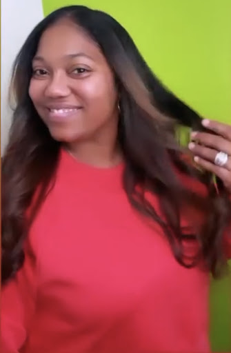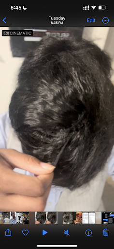 The stylist began sewing down the net upon my request to protect my natural hair. The stylist didn’t sew the net down properly which created great tension on my head, then she began to sew in the weave extensions. Once the styles was completed installing the weave she began to trim and curl.