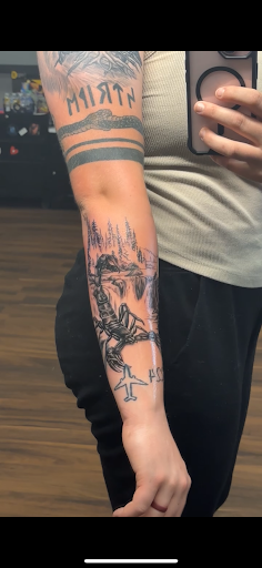 Read moreI came to Mark about a year and a half ago with 6"x4" cross on my right arm that was about 25 years old. I never really loved it - artist put it a little to low. I had heard how talented Mark was so I just asked him to create over top of what I already had - eventually I wanted a wrap around half sleeve on my upper arm. Just recently finished the last part, and I'm thrilled with it. People stop me ALL the time to comment on how great the creativity and especially the shading. Would recommend him to anyone! Took 6 sessions (2 for front, 1 for top shoulder, three for inside of the arm (b/c I could only sit for about 2 hours at a time - which Mark was totally cool with and left me looking complete after...