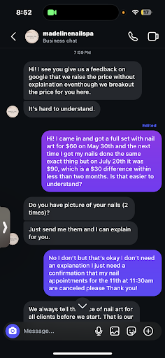 I originally left a 3-star review because I truly loved how my nails looked and appreciated the staffâs kindness. But there were serious concerns I couldnât ignore.