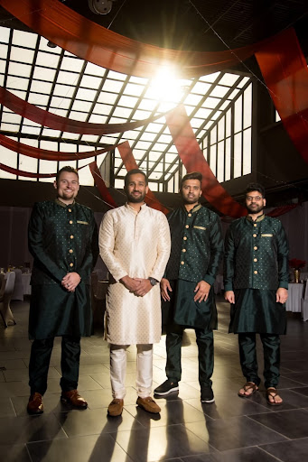 RANGOLI SAVED THE DAY!! My cousin got married on Saturday. The day before the wedding, we found out that the airline lost the luggage containing the groomsmen's kurtas! Talk about a panic!! We had a two hour window on Friday evening to search Columbus for three matching kurtas, in three different sizes, in dark green, and bonus if they have gold accents like the lost kurtas... After having no luck at multiple shops, we found Rangoli 30 minutes before closing. It was so beautiful, even from the outside, and it was two stories tall. It was our best and last hope to find something for the groomsmen to wear to the wedding the following day. When we explained our circumstances, the staff was so incredibly helpful! They split up to try to find something that could work. I felt like they were treating this situation as if it was their own event on the line. We were searching, and coming up empty. Then, miraculously, one of the saleswomen came up the stairs with three matching kurtas in hand, dark green, gold trim, and in the three exact sizes we needed. Honestly, I had to hold back tears! There was so much joy from everyone about this huge success! If I am ever in the need, I would absolutely ALWAYS go to Rangoli first! They have a large and beautiful selection, but more importantly, we were treated with such warmth, hospitality, and concern to help with our situation. Rangoli is fantastic, and the people there are truly our heroes! I've attached a photo (Photo credit: Marah Grant Photography) of the groom with his three...