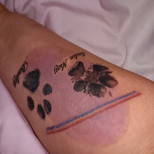 Read moreSo many HUGE THANK YOU'S going out to Trevor Wills. We met at an old job & have been great friends ever since . The Tattoo Shop is 5 minutes away from my home & he did an amazing , caring , outstanding & forever cherished tattoos of our 2 dog's paws that passed away 2022 & 2024 , both with , 1st with Bone Cancer & the 2nd dog with a rapid form of Cancer that took over quickly within a week of finding out . I am furever blessed with their permanent markings . There was a beautiful rainbow 🌈 with purple 💜 skies on July 9th , the day after we put her down . Trevor nailed the color schemes today...