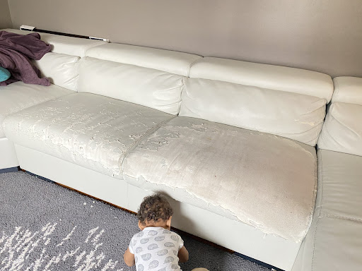 My kids have been sitting in dust and my toddler has been putting the leather shedding in his mouth regardless of how much a sweep and collect the waste. Year after year the section is rotting. It’s an embarrassment. I only invite family to the house because they’ll understand right? Nope! I’ve been asked on too many occasions when I will put the sectional on the curb. I’ve included a couple photos where you can see the progression that continues on strong.
