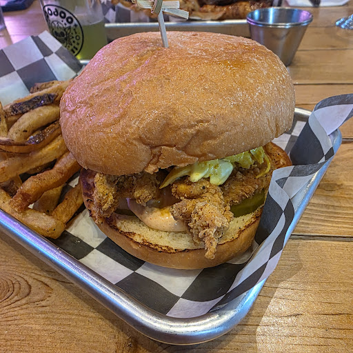 Read moreMy friend and I Stopped in the other day. Everybody working there was super friendly and helpful. The inside is bright, and colorful. Patio was outside, I had the Paloma, which was delicious, and my friend had a few beers that he really enjoyed. Nice beer menu. We both ordered burgers. The food came out within a good time, however, everything could have been warmer. Burgers and fries were lukewarm. The burgers need the bun warmed, the whole plate needed to be warmer. The plate wasn’t warm which made me wonder if they have food warmers in the window on the line. I mentioned that a cold bun on a burger isn’t doing it any favors to the manager and he said he agrees and will remedy it. Regardless, We still ate every bite. I hope this place does well as we need beer and burgers place with a patio within that block. Despite the hiccups, I would definitely go again to try more food options and explore their beer...