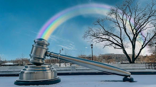 Located in front of the Ohio Supreme Court. This one is made of stainless steel while the other one we found was made of wood. 31 feet long!