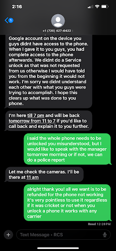 Read moreYes the place does fix phones but they’ve hadn’t done it correctly. I fixed my iPhone 6s Plus screen there and after the home button fingerprint function didn’t work. Time passes by and I go and complain about the faulty fix to my phone. Then the guy (who wasn’t the original guy that fixed my phone) goes to tell me that he remembers my home button being broken once it was brought in which is completely false. And I ask them if a broken screen can lead to the fingerprint function not working and he didn’t answer my question and stared at me speechless. Then he goes on to claim that supposedly when I brought my broken iPhone to get the screen fixed that it had already had a second-hand screen on it which is humouriously ridiculous. Then inspects my phone and sees that the screws the bottoms of the phone aren’t screwed on. And prior to visit I didn’t know the screws weren’t there and they were the ones who had touched my phone in any manor to fix it. Long story short they accused me of having a faulty iPhone from the start to avoid having to repair...