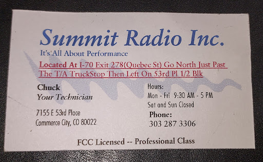 Read moreI drove up from Littleton with my old Cobra 18LTD to troubleshoot the mic as well as the main unit. This CB fits into a special unique-sized enclosure limiting me to only this size of radio for my restored 1985 Ford Pathfinder 4x4 van. Chuck troubleshooted the mic and rewired a new one on a Friday afternoon, while I waited, which is incredible. This kind of service is unheard of this day and age. He is friendly, direct, and to the point. Again, incredible service at an extremely...