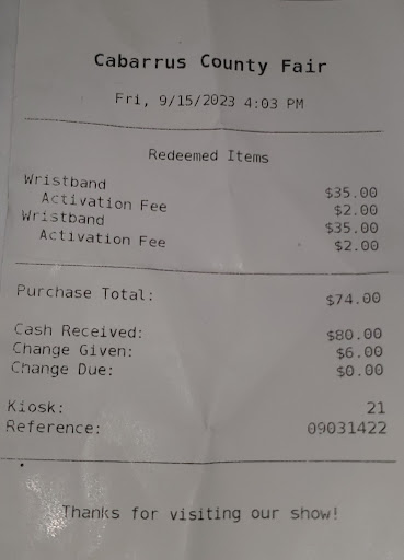 Read moreI don't know what has happened to this place. When I arrived, they waited until AFTER I had paid (NO REFUNDS!!) to let me know I couldn't bring my camera in. I asked about phones but the lady just kept telling me to leave. They told another person, also after they had let him pay. I had to walk back to my car and drop off an instant camera. When I called the next day to ask about it, the woman told me I was wrong, cameras were allowed in. When I said I had been kicked out for having a camera, she told me they couldn't list everything that isn't allowed on their website, and it's in the rules. I asked where these rules were, since they weren't in the FAQ and I had read it. She told me they were in the Cabarrus County Fairbook. I asked her where it was, she told me on the website. I asked her where and she couldn't or wouldn't tell me. I asked multiple times to see a copy of the rules that said cameras aren't allowed, and she continued to swap between "they are allowed," "they aren't allowed and we can't write down every rule" and "it's not even that big a deal" I eventually begged her to let me read the rules for the fair, and she told me couldn't help me and hung up. I am STILL looking for this Cabarrus County Fairbook, so if someone finds it please let me know. No one was directing traffic at the event, people kept missing the turn because people were just standing about next to all the cones. There was no signage from the fair for parking, just from the businesses and homes down the road...