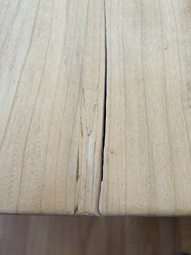 BUYER BEWARE! Or better yet, buyer find another vendor and do not conduct business with Green Mountain Tableworx. After 21 months, two tables, over 100 texts and phone calls, I still have a cracked and splitting dining table. Attached pictures tell the story, but here’s a quick recap (first 5 pics original table, last three pics replacement table).