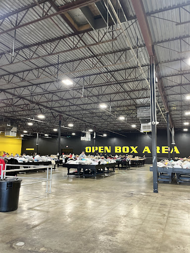 In the brown box area, I found 2 bicycle motors and a set of granite pots and pans. I bought 24 items at the grand opening and only one had an original retail value under $100. I enjoyed the DJ and the free tacos. The employees were friendly and the area in the back where you open boxes was huge, plus you can plug things in to verify if they work.
