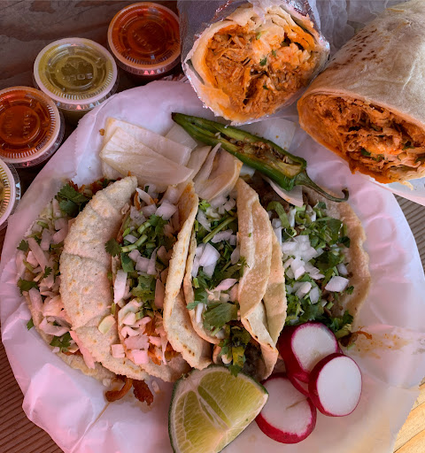 For $1.50 each, you get your choice of meat (try at least one carne asada), cilantro, onion, cabbage, and a homemade tortilla. The tacos come with radish and lime...