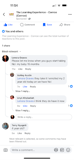 So I know my stuff when it comes to daycare centers, and this one has really met my expectations! It’s clean, my son is met with love every morning, and I can tell he loves going here! The enrollment process was easy, and there is always someone available to answer your questions. The only concern I had was at the end of the day when he got picked up he just had some dried snot on his face, so my only critique would be to send him home looking clean. But we love TLE of Conroe and are very thankful that they treat us and our son like family. We are new to this area and we are so thankful to have found a facility that we can trust with our angel. It’s not easy trusting others with your child.