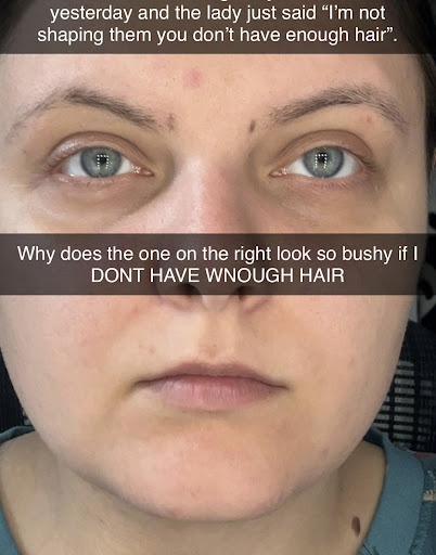 She also got upset when I said my go to is to shave mine off and redraw since they’re uneven and have very different arches instead of educating me how to shape them. She also told me to not wear a bonnet to protect my hair if it touches my eyebrows bc it’s making hair get misshapen. Also used WINDEX to get the dye off my skin when she dyed them. Skin was super dry after that.