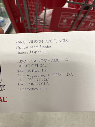 Read moreThis is my favorite Target Optical! Every time I go, no matter who is working, they are so kind and clearly care about the customer. Today I went in just expecting to get a copy of my prescription in order to purchase Rx sunglasses through a lesser known website expecting it to be the cheaper route. Before getting me the copy of the Rx, Sarah made sure to ask what my plan was, where I was looking, and how much I had in mind. She ended up saving me $40, which then allowed me to use the total of my budget to add the protection plan. When I came in, so only asked for the copy of the Rx, but she went out of her way to see if there was anything else she could do and ended up saving me tons! If you need glasses of any kind, I'd consider this Target Optical. Whether you get your exams done there or not they put in so much effort to help... I actually ended up transferring to get my exams done through them as well!...
