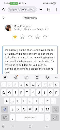 Read moreToday I had to bring my 3-year-old daughter to urgent care. Antibiotics were sent to Walgreens pharmacy. I went to the pharmacy to make sure they had the prescription. Jennifer who became a pharmacy tech in 2024 told me that she didn't have the prescription. I felt as though she had no compassion when she spoke to me. I told her I would wait a few minutes and I'd come back to see if the prescription was there. I went around sat in the parking lot for a few minutes. Checked my app and the app said the prescription was there and being processed. I pulled back up to the window to double-check and make sure the app was correct and Jennifer was there with another young woman. They saw me pull up. Jennifer went out of the pharmacy area to the front side of the register and the other woman preceded to check out Jennifer for a bottle of water. At this time they looked at each other and laughed which when you're not part of the joke feels like you're being laughed at. Then Jennifer came back into the pharmacy area and the young girl went on the other side of the register and Jennifer proceeded to check that worker out for a drink she was purchasing. They acted like I wasn't there when I know they saw me pull up. Jennifer then came over to the window and asked me for my child's date of birth and I told her I'm going to be waiting for the prescription I just wanted to let you know that it says it's being processed. She verified my phone number and said I would get a text when it was ready. I went into the parking lot and parked I checked the app again and it said it would be ready after 6:09 p.m. while I was waiting in the parking lot for over an hour my phone went dead so I was unable to receive a text message from Walgreens so I decided to pull up to the window for a third time at 6:15 p.m. to check the status of my prescription for my daughter. Jennifer, with a lack of compassion asked me for my daughter's date of birth again which I supplied and she proceeded to tell me that only the amoxicillin was ready and the ear drops were not ready yet. So I asked her if she could check on how much longer it was going to be until the ear drop prescription was filled. She left the window and came back and told me that they were out of the ear drop prescription. So I told her to please give me the amoxicillin so I could leave. She went and mixed the antibiotics came back and told me to have a nice day which I felt she did not mean at all. I think this woman needs to go back into training on how to treat people because this woman's bedside manner was non-existent. I have been with this pharmacy for 7 years and they go through pharmacy technicians like a perso goes through clean underwear. I also want to add by the time I got home and plugged my phone in so it could charge the only text message I received from Walgreens pharmacy was to tell me that my prescription was delayed. I did not receive a text message saying my amoxicillin was ready. I only received a text message that my prescriptions...