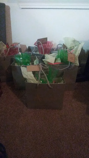 Now as to the items in her shop: she claims that her seven day candles with glitter and oils and herbs are set out during a super moon and charged, and charged 30 something dollars for them. I can say, while I was there, which was almost every day for quite a few months, I saw her get candles, pretty them up, and place them on the shelf. Not one of those candles was charged under a super moon. As to the poppets that I made out of yarn, which from the pictures I've seen, some of them are still hanging in her shop. When I made them, I was going to either make them as just plain poppets so whoever gets them can put intention and purpose behind it, or I would do some for specific purposes. She, however, had me label them with random purposes so they would "sell better."